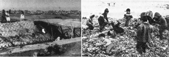 1970년대 서울 망원동 뚝방마을 모습. 오른쪽은 뚝방마을 아이들이 쓰레기 더미에서 동전을 찾고 있는 모습. 이상양기념선교회 제공